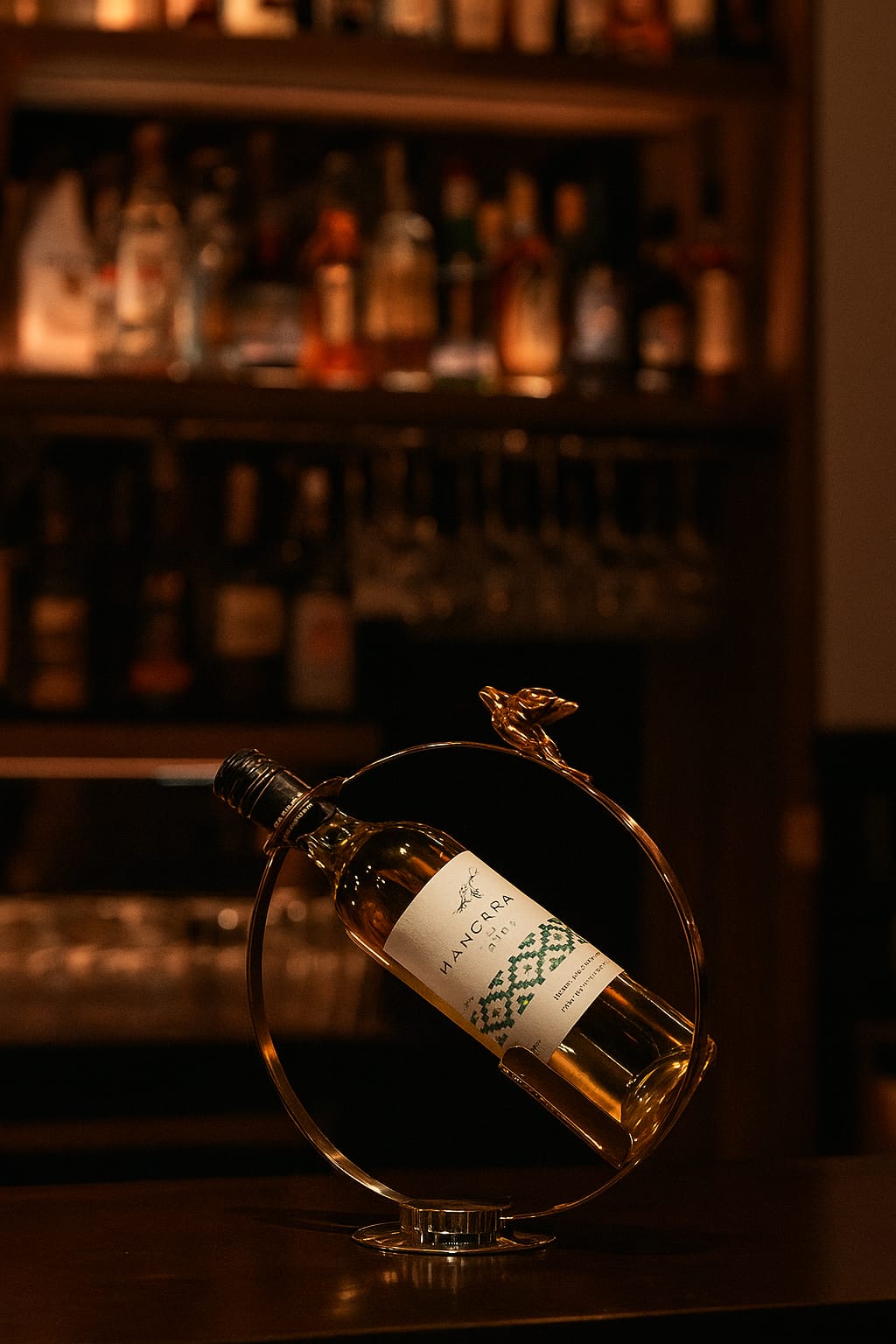 O servidor de vinho decorado com flor em latão é uma peça que une sofisticação e funcionalidade com um visual escultural. Produzido em aço inoxidável maciço, ele acomoda a garrafa em posição inclinada, favorecendo a oxigenação e conferindo equilíbrio à apresentação.
